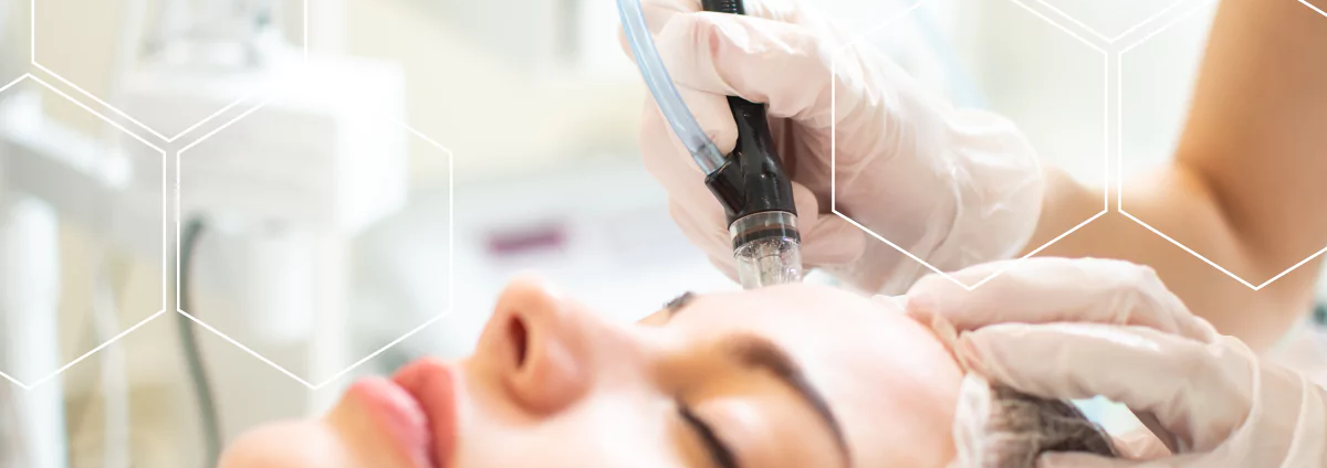 Entfernt abgestorbene Hautschüppchen und Verhornungen kontrolliert. Das Vakuum trägt Partikel ab – intensiv, dabei sanft und in der Regel schmerzfrei. Ideal als Vorbereitung auf nachfolgende Schritte.